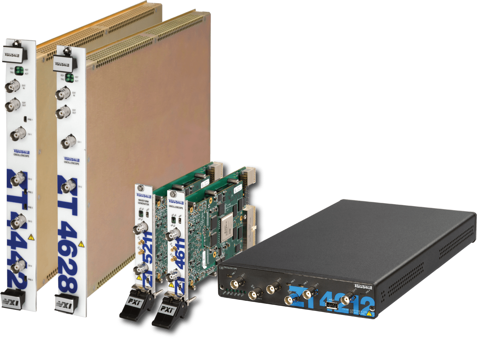 - ZT係列高性能示波器/數字化儀主要有ZT4600係列、ZT4400係列和ZT4210係列,其中4600係列為高速高帶寬係列,最高實時采樣速率為4GS/s,最大帶寬為1GHz,分辨率為8位。4400係列為高分辨率係列,分辨率最高位14位,最高實時采樣速率為1GS/s,帶寬為300MHz。4210係列為高性價比係列,分辨率為8位,最大實時采樣速率為1GS/s,帶寬300MHz。所以ZT係列示波器產品都有PXI/PXIe、VXI以及LXI等多種平台可選,單個板卡或者設備可提供最多4路輸入通道。