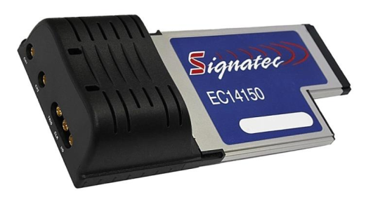 - Signatec品牌EC14150是一款基於ExpressCard接口的高速采集卡,提供2路輸入通道以及14位垂直分辨率,每通道最高采集速率為150MHz,板載512MB存儲空間以及266MB/s穩定的數據傳送速率。具有AC耦合和DC耦合輸入兩種板卡,同時板卡工作時最大功率不超過4.5W。
